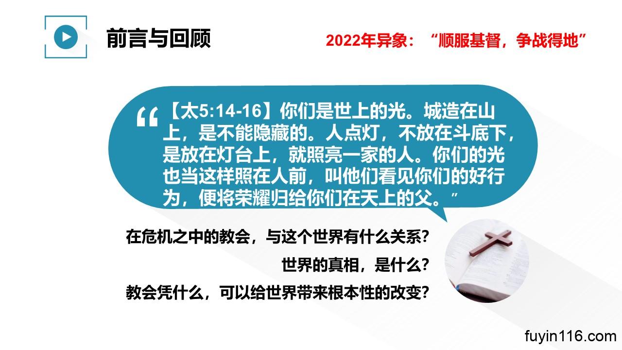 “顺 服 基 督,争 战 得 地”,是主赐给我们2022年的异象。