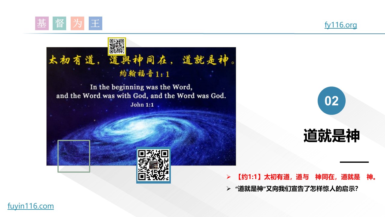 在伟大的《约翰福音》的开篇,就宣告“太初有道,道就是 神”。