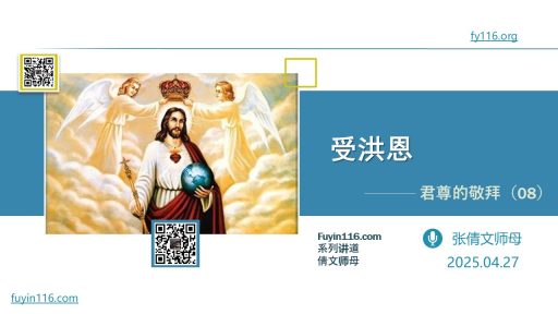 恩典,是什么? 恩典与爱,两者有何关系? 恩典是怎样来到我们中间的? 恩典的能力和代价,又是如何?   愿上帝的祝福借着祂的真道,更多地临到每一个认真聆听的灵魂。 欢迎您收听: 《君尊的敬拜(08)受洪恩》 本文链接(若有朋友在微信里打不开本文,可以把下面的链接发给他,在浏览器里打开): https://god116.top/tde6 您也可以点击下面的链接,重温之前的信息: 《君尊的敬拜系列》 ⚠️⚠️⚠️ 注意 ⚠️⚠️⚠️ 鼓励大家在手机浏览器或电脑浏览器里收藏我们的网址(fuyin116.co…