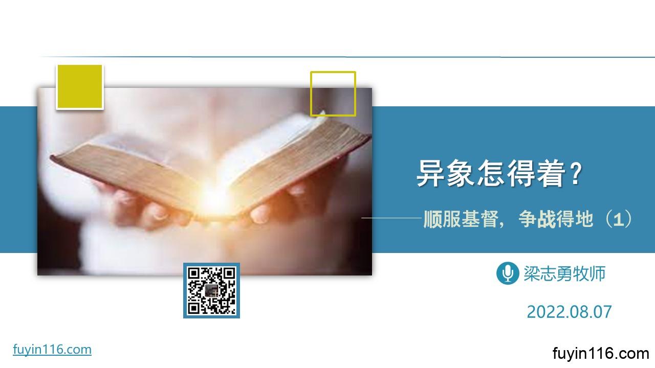 在8月7日,我们将进入一个新系列的信息分享。 这个新系列,就是《顺 服 基 督,争 战 得 地》系列。 “顺 服 基 督,争 战 得 地”,是主赐给我们2022年的异象。 在今年的第一场讲道《新年的异象》中,我们也简单分享了这个异象。 接下来,我们则要借着系列分享,更细致地分享与这个异象有关的真理。 在第一讲中,我们着重要跟大家分享的是: 何为异象? 为什么我们会得到上帝所赐的这个异象? 这个异象对我们,有何要求? 欢迎您收听我们的录音,愿上帝的祝福借着祂的真道,更多地临到…