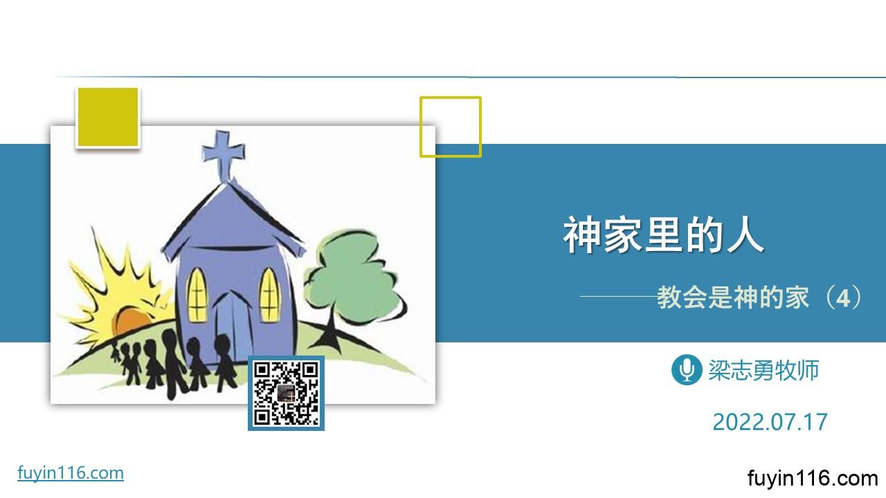 在7月17日,我们继续分享《教会是神的家》系列信息的第四讲: 《教会是神的家(4)神家里的人》 基督徒为何能做“神家里的人”? “神家里的人”有哪些独特之处? “神家里的人”的联结纽带是什么?它对周围的世界有什么影响? 欢迎您跟着我们的文章的提示,参加我们的视频直播或收听我们的录音,愿上帝的祝福借着祂的真道,更多地临到每一个认真聆听的灵魂。 您也可以点击下面的链接,重温之前的信息: 《教会是神的家(1)“神的”家》 《教会是神的家(2)神的“家”》 《教会是神的家(3)渐成主殿》 点击音…
