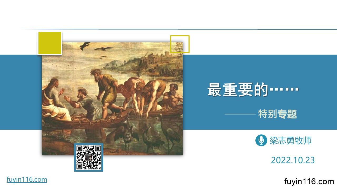 在10月23日,我们进入一次特别的专题分享: 你知道,“最重要的遇见”,是遇见谁吗? 你知道,“最重要的祝福”是什么吗? 你知道,最重要的“人生决定”是什么吗? 欢迎您跟着我们的文章的提示,收听我们的录音,愿上帝的祝福借着祂的真道,更多地临到每一个认真聆听的灵魂。 《最重要的……》 https://god116.top/4t23 点击音频媒体前面的小三角“►”就可以播放 了: 我们的阿爸天父,感谢赞美你 感谢你赐给我们《圣经》真理,让我们可以领受你恩典和真理的祝福。 我们特别感谢你,赐给我们主基督;若没有主基督…